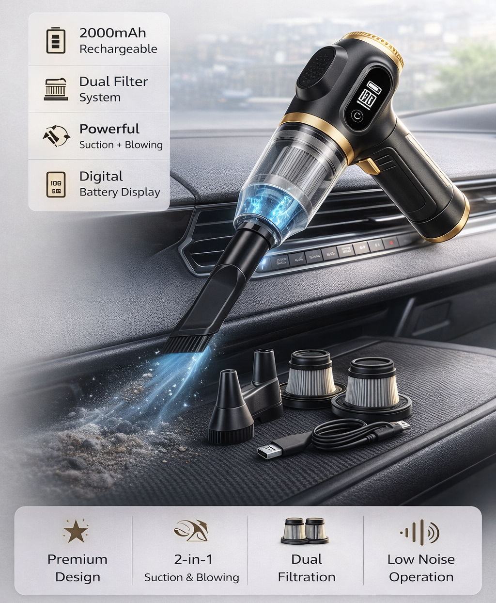 DriveVac™ Pro – Cordless 2-in-1 Car Vacuum & Air Blower