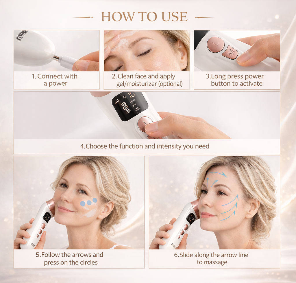 You don’t need anything complicated. LUMEN Lift™ can be used on clean, dry skin, but for the smoothest glide (and a more comfortable feel), it’s ideal to use your usual moisturiser, serum, essence, or face cream. This keeps the experience effortless and helps you move the device evenly without dragging.