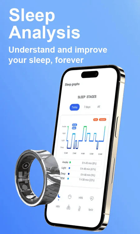Yes. VitalRing™ automatically detects and records your sleep, including duration, stages, movement, and overall sleep quality.